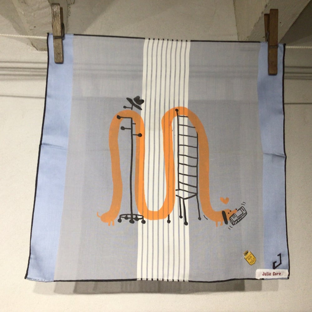 impression orange et noir sur mouchoir ancien 30x30 cm